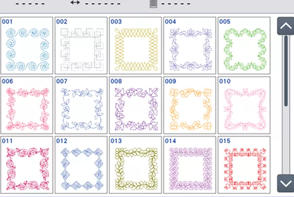 Explore the 1,184 built-in embroidery designs including 140 frame pattern combinations. Also included are 40 size adjustable embroidery lettering fonts and 11 monogramming font styles.