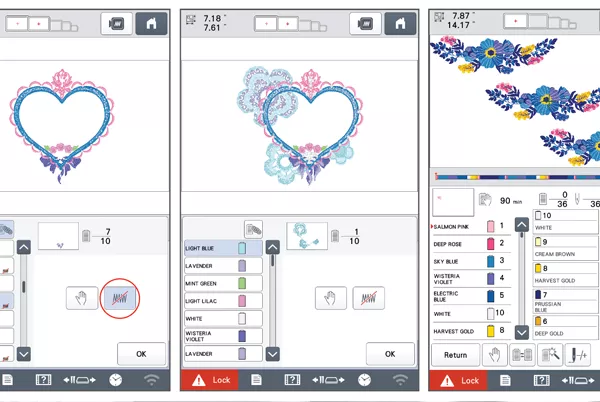 Choose new colour schemes for embroidery designs with enhanced functionality. Select from Random, Gradient, Vivid and Soft styles and a range of colour combinations will be displayed on screen.
